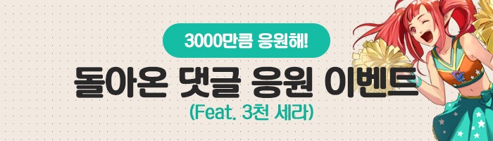 - 보상 : 양질의 댓글을 남겨주신 총 30분의 독자분에게 3,000세라를 드립니다.