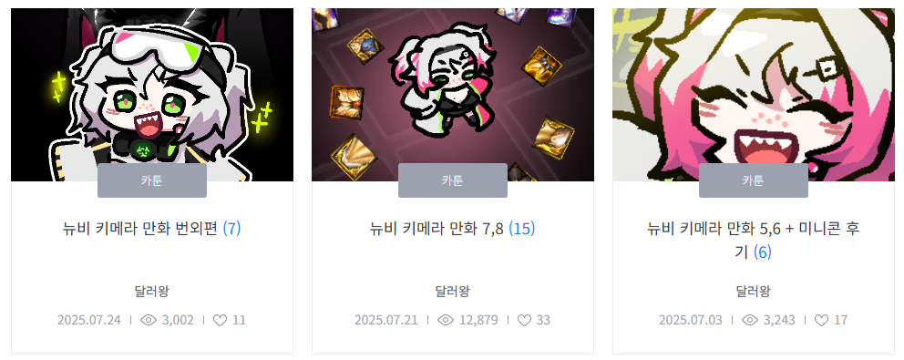 UCC 게시판에서 뉴비 키메라 만화를 연재하신 달러왕님이 챌린지로 보금자리를 옮겼습니다.