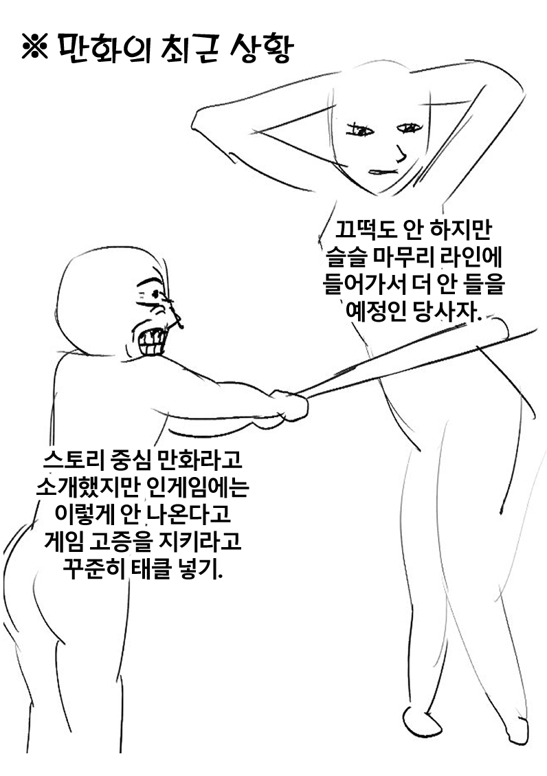 놀랍게도 이 만화은 인게임은 걷어 찬 스토리 중심인 만화다←