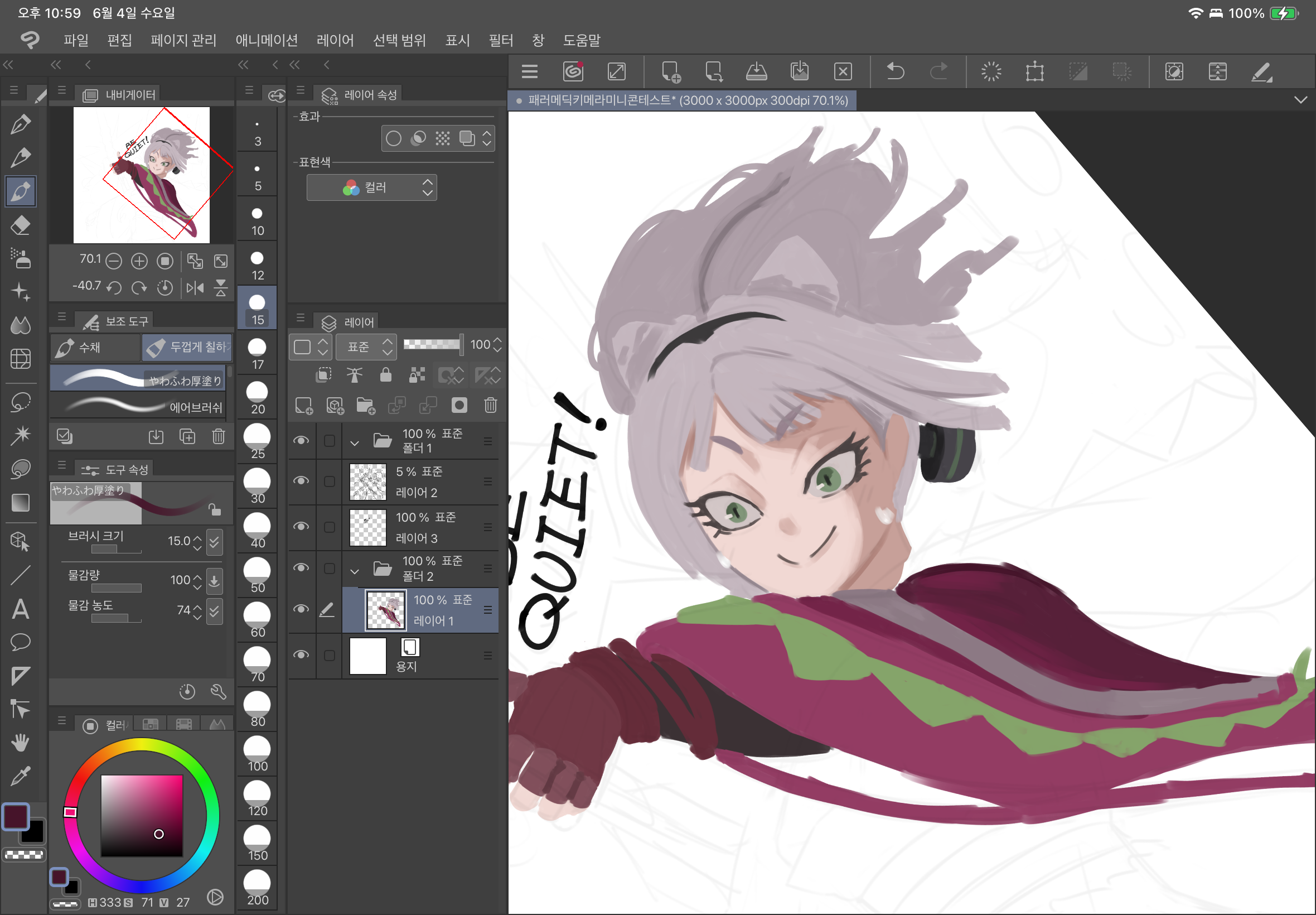 처음에는 주변의 눈치를 보고 입을 다물어버리는 '비 콰이엇' 스킬의 컨셉이 재밌어서 방향을 그리로 잡았지만