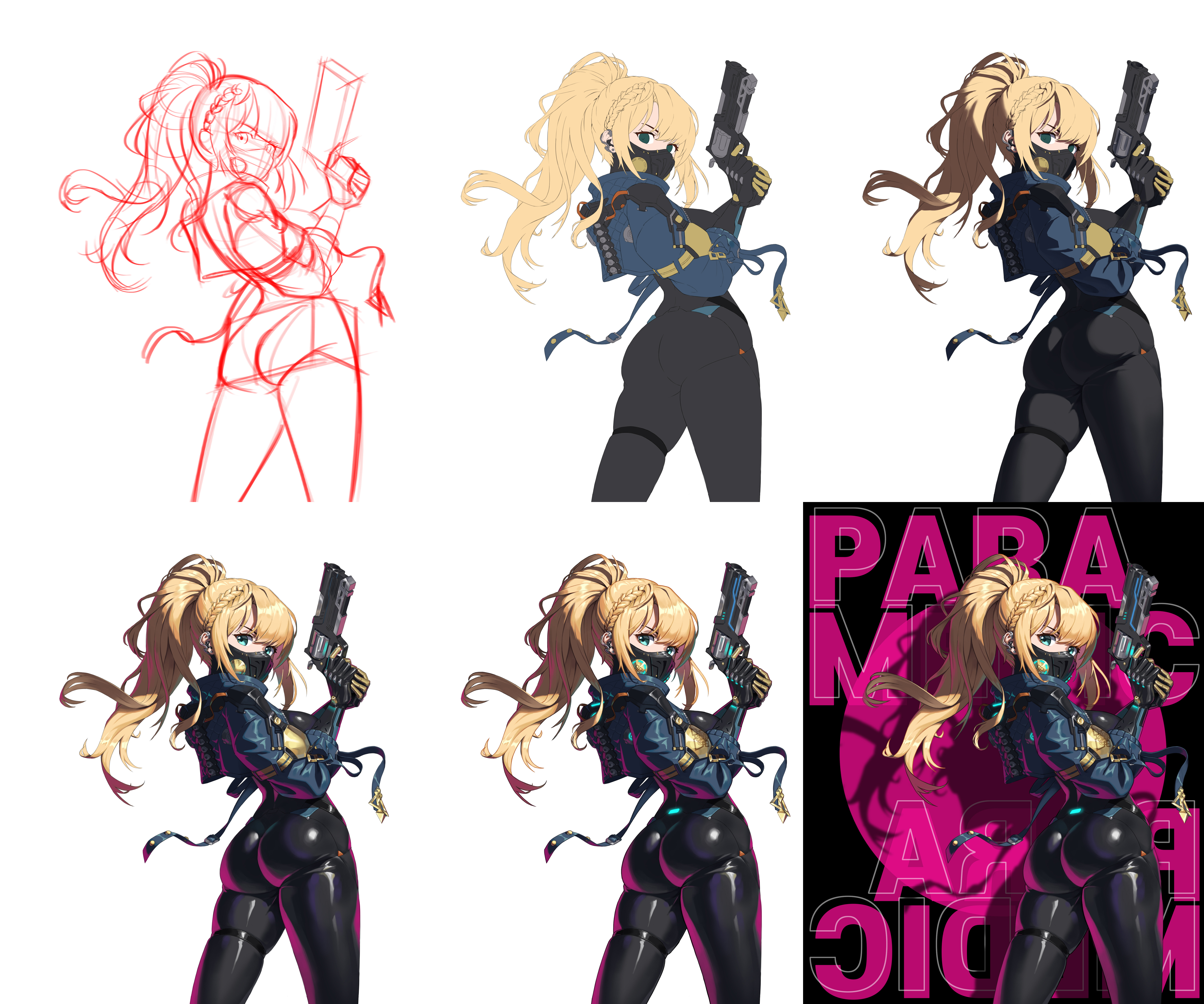 러프 - 라인&밑색 - 명암 - 묘사 - 정리 - 배경 순으로 작업했습니다.