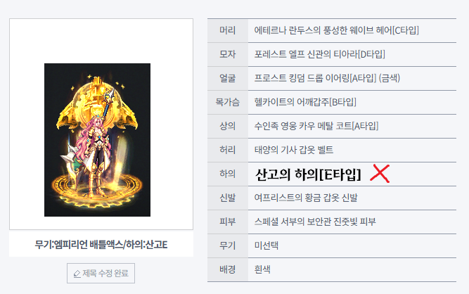 X표시한 부위는 현재 구할 수 없는 아바타입니다.
