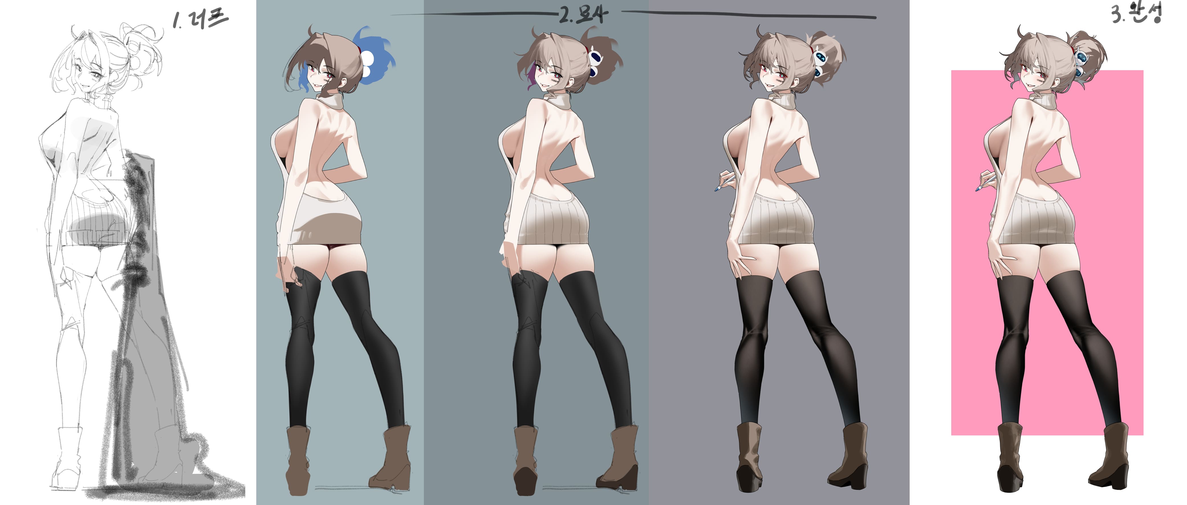 사실 처음엔 겉옷을 걸치고있는 모습을 계획했는데,