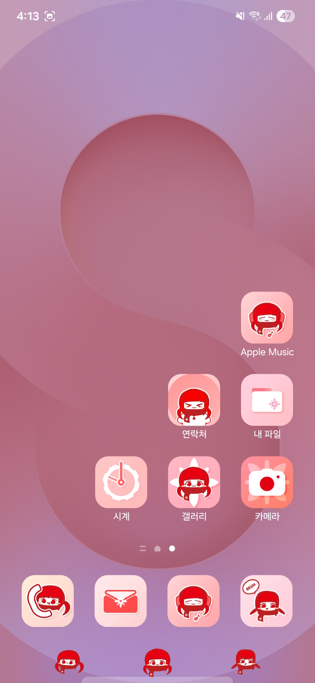 스마트폰의 커스터마이징 기능을 이용해서 스마트폰에서 아이콘들을 맘에 드시는 대로 바꾸시면 됩니다.