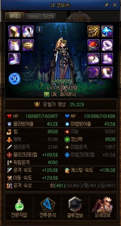 플레이한 메딕 스펙입니다 입장명성이 2.52 대라 낮추느라 고생했네요.