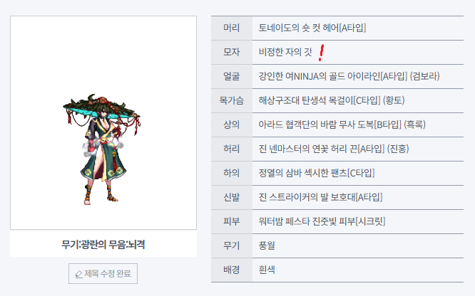 ※본문 의상에는 표시되지 않았지만, 무기 아바타인 풍월도 현재 구할 수 없습니다.
