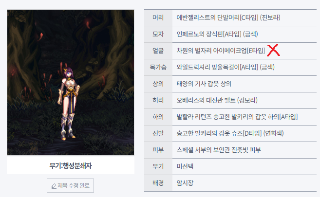 X표시한 부위는 현재 구할 수 없는 아바타지만 A타입 등으로 대용 가능합니다.