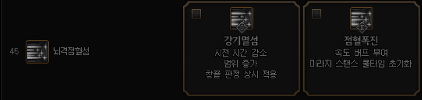 45제 뇌격 점혈섬의 %/쿨은 매우 낮으며, SP를 2280이나 소모한다.
