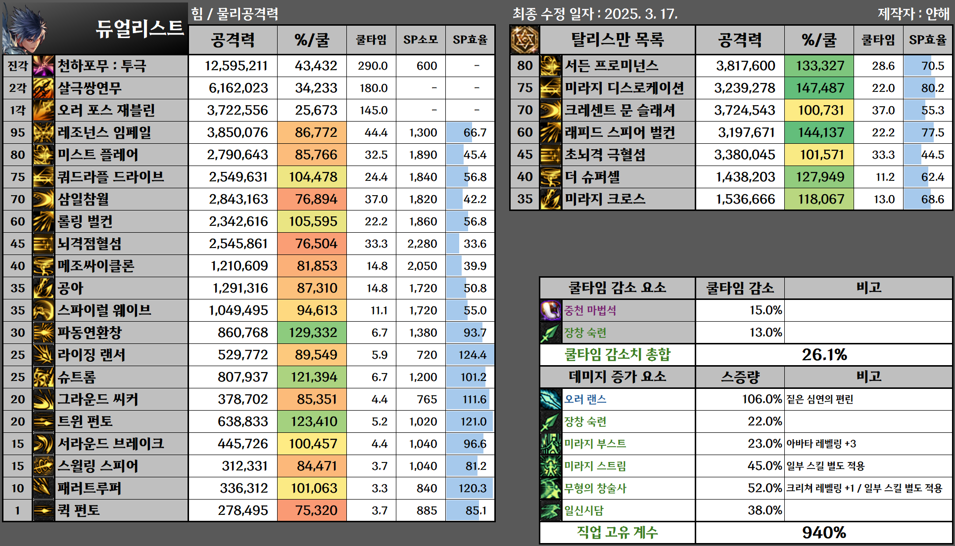 적용되는 나머지 스킬들은 버려지거나 하급기인 관계로 사용률이 떨어지기 때문에 언급하지 않겠습니다.