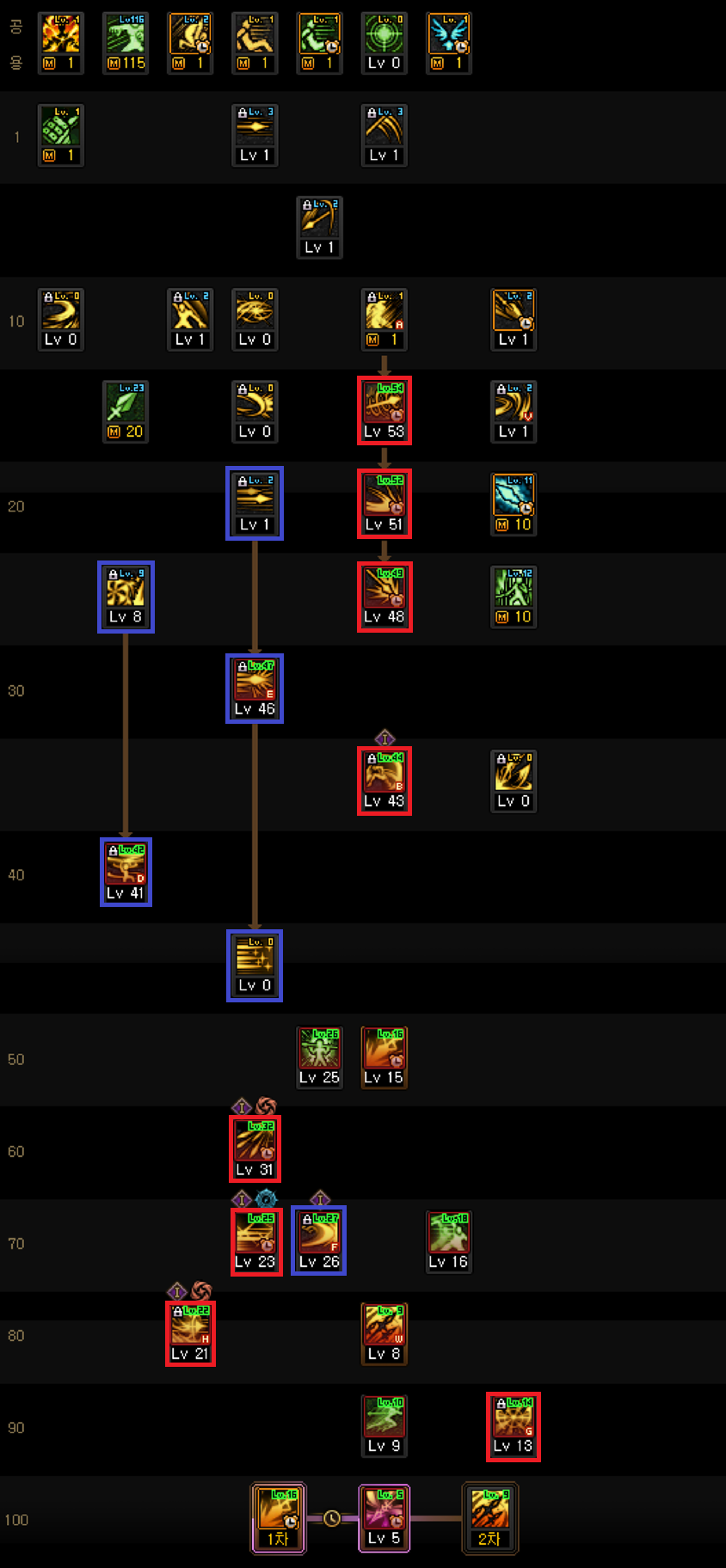 빨간색 네모를 쳐둔 스킬들은 필수적으로 채용