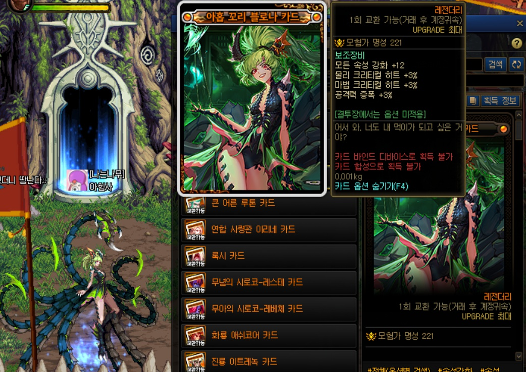 카드를 업그레이드 이후 보주로 바꿀때는 '마법부여가' 유저들을 찾아가 부여하면 됩니다. 경매장에서 보주로 구매도 가능하지만 비싸요!