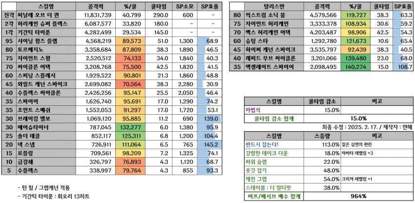 중천 시즌은 쿨타임 감소율 높이기가 빡빡해서 아마 30퍼 정도 생각하면 될 거 같습니다
