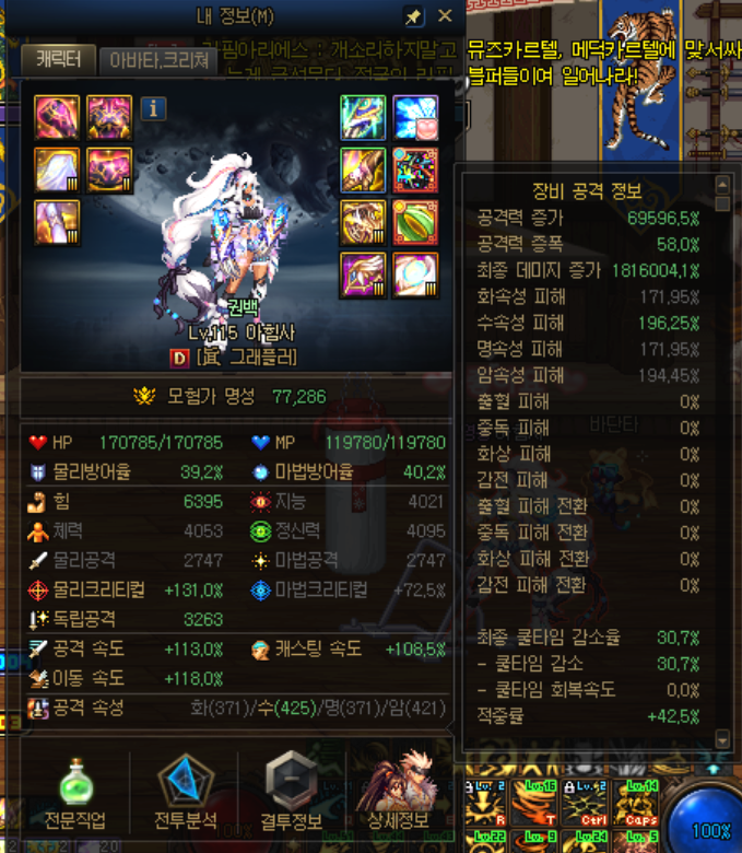 ● 던파는 크리티컬 수치를 100퍼센트로 맞추는게 가장 중요하기 때문에 이부분을 최우선 해주시면 돼요.