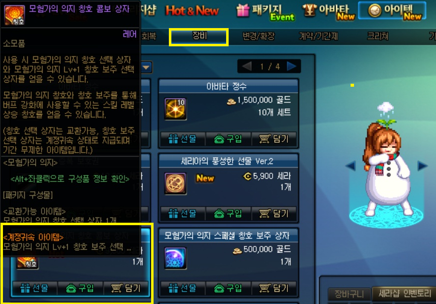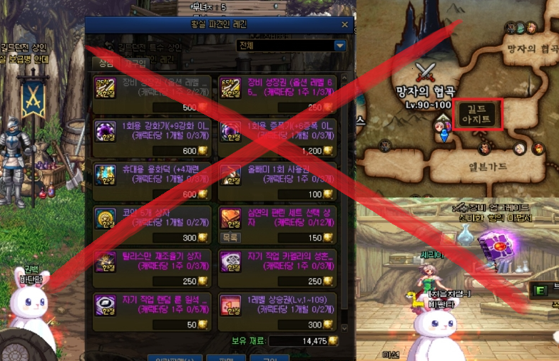 ▲ 버프강화 아이템을 구할 수 있는 루트(길드아지트 상점, 세리아 방의 마법서, 마일리지 상점 등등)와 버프강화 장비들