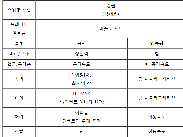 ▶ 머슬시프트(스킬 캔슬 가능 횟수) 충전시간 감소