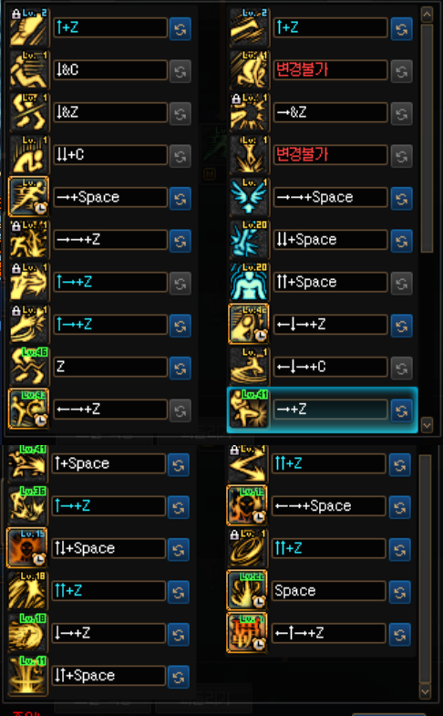 위z와 아래z를 평범한 스킬들 커멘드로 설정하면 조작이 더 쉽겠지만 패황의 순보(섬보) 스킬은 머슬시프트 캔슬을 하면