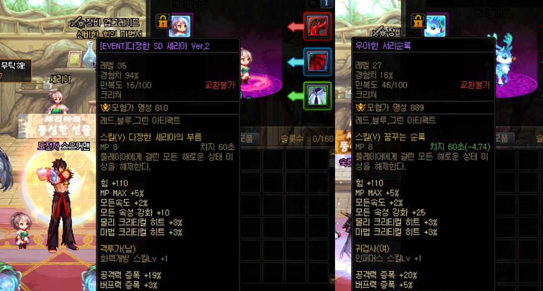▶ 현재 패키지 구성품 크리쳐와 sd 세리아 크리쳐 간 공격력 증폭 옵션 1%, 버프력 증폭 2% 차이가 있음에도 가격은 비슷하므로 패키지 크리쳐를 구매해줍니다