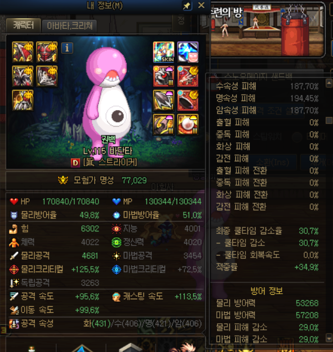 저같은 경우 용투장의 속도증가 옵션때문에, 아바타 얼굴, 목가슴 공격속도 증가 옵션을 '모든 상태이상 내성 증가' 옵션으로 바꿔 사용합니다