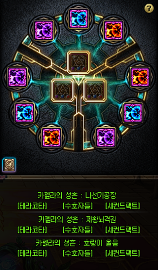 카펠라의 성흔 : 월광진폭 -> 현재 이걸 사용중입니다. 나선게이지 회복량, 범위, 딜을 증가시켜줍니다.