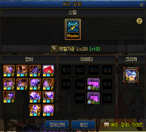 인벤토리창에 보시면 '버프 강화' 라는 탭이 있습니다.