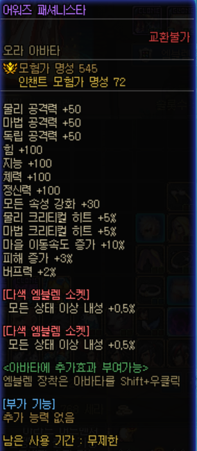 아래 장비와 동급의 옵션(명성) 오라 아바타로 구매하시기 바랍니다.