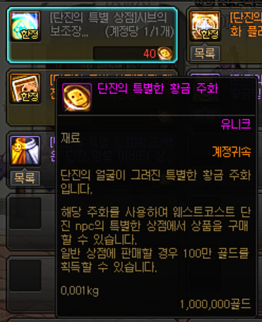 웨스트코스트에 단진을 찾아가면 [단진의 특별 상점] 이라고 있습니다.