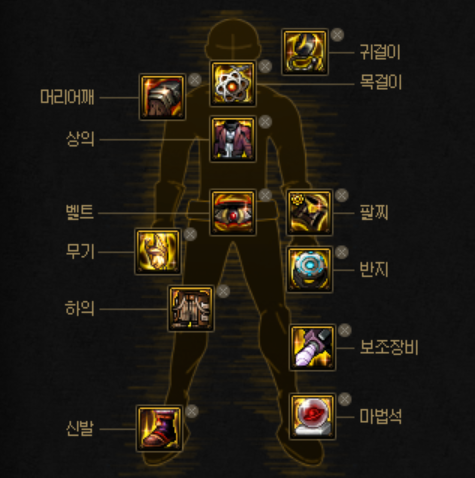 머리어깨 / 보조장비 / 마법석 / 귀걸이는 거기서 거기니까 유효 뜨면 쓰세요.