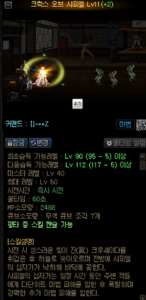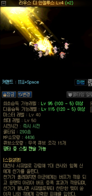 파티원 무적은 동일하며 전직 스킬 중에 아무때나 우리엘을 발동 시킬 수 있습니다.
