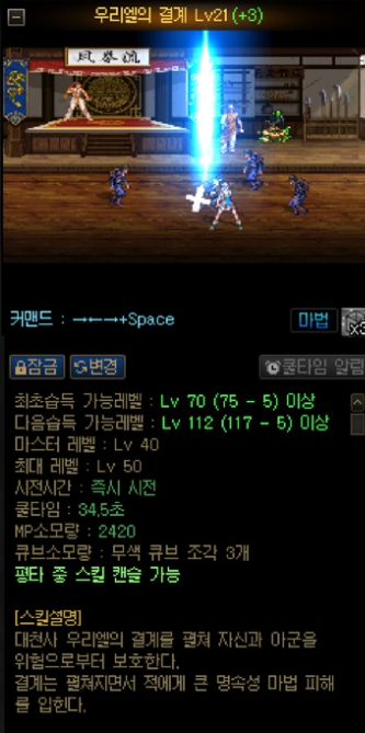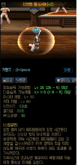 입장해서 수호의 축복과 함께 제일 먼저 사용해야 할 버프 입니다.