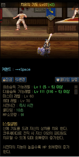 여크루세이더는 다른 버퍼 3직업에 비해 가장 많은 회복 스킬을 가지고 있습니다.