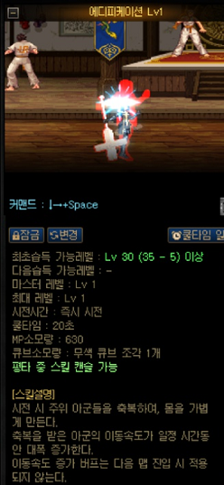 이단 점프가 가능해지며 스킬2키(저는 스페이스바) 지속시 공중에서 천천히 하강합니다.