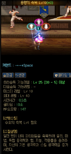가장 기본이 되는 버프 스킬입니다. 파티원들의 공격력을 올려줍니다.