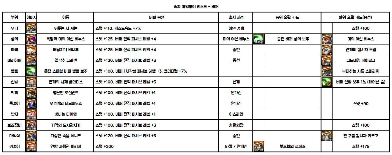 게다가 이번 시즌 초는 버퍼를 안키우는게 더 이익일 정도이고 운영진도 본캐로 베누스 레기온을 돈다음 계정귀속 버퍼 전용장비로 편하게 부캐 버퍼를 육성하는 걸