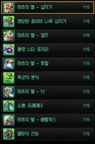 평상시 아바타 상의는 '크럭스 오브 빅토리아'이고, 플래티넘 엠블렘은 '계시 아리아'가 좋습니다.