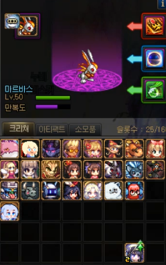 마르바스는 크리쳐 창을 오른쪽 구석에 위와 같이 켜놓으면 마우스를 써야하는건 여전하지만 스위칭하기 편합니다.