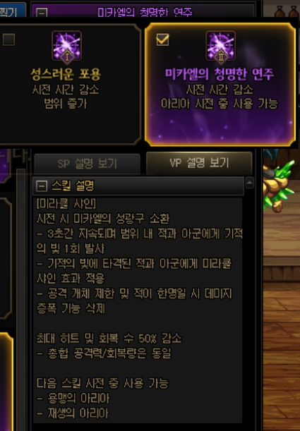 기존 탈리스만의 효과를, 미카엘의 청명한 연주는 아리아 시전 중에도 사용이 가능하며