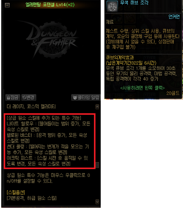 무색큐브를 소모해 보다 강력한 딜링을 해주는 세트입니다.