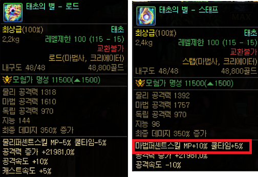 쿨타임이 길거나 빠르게 스킬을 쓰는 직업들에게는 추천하는 장비입니다.
