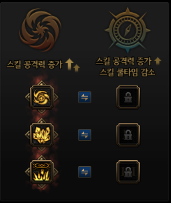 스킬강화는 본인에게 필요한 스킬을 큰폭의 데미지증가/소폭의 데미지 증가+쿨타임감소 2가지 옵션중에 선택해서 가주시면됩니다.