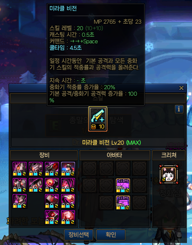 미라클 비전은 레벨 30의 액티브 스킬로 기본 10Lv 마스터시 35%의 스킬 공격력을 가지고 있습니다.