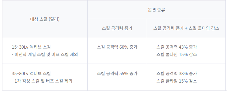 다른 세팅보다 최종데미지가 낮은 편이나, 각성기의 연동해제,스킬공격력,쿨타임 감소로 능력치를 끌어올릴 수 있습니다