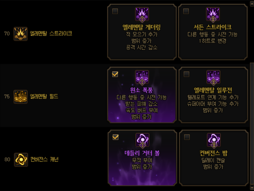 3. 엘레멘탈레인 딜은 속성발동 스킬레벨에 영향을 받습니다.