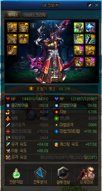 상/하의엔 본인 마법크리티컬에 따라 지능+마법크리티컬or마법크리티컬 추천드립니다