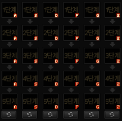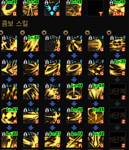 콤보 슬롯 5번째에는 강력한 스킬 즉 고랩기를 두고 1-4번째에는 쿨타임이 짧은 스킬을 두어 짧은 쿨타임으로 강력한 데미지를 뽑는것이고