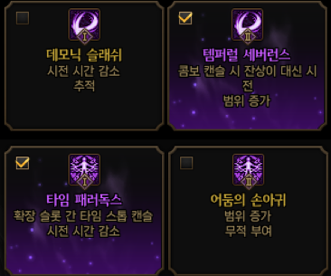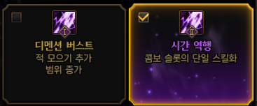확장슬롯에는 콤보 슬롯5번째에 두는 스킬들보다 약하지만 그래도 강력하고 쿨타임이 어느정도 있는 스킬을 확장 슬롯에 두어