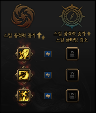 광검 : 데미지 제일 강력함 / 공속10% / 물리스킬쿨타임10퍼감소(몇몇 저랩기들, 70제, 2각, 진각)