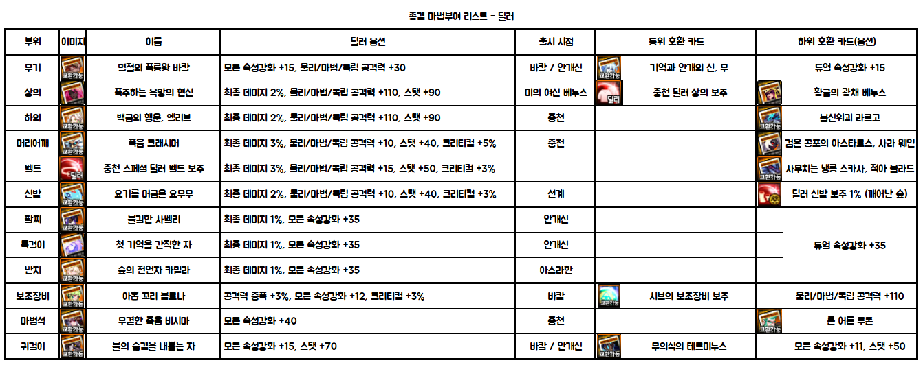 출처 : 퀸붐님 [25년 1월 24일 오늘의 던파 중천 시즌 재료, 마법부여 정리 (https://df.nexon.com/community/dnfboard/article/2894441) 사용 허락 감사합니다]