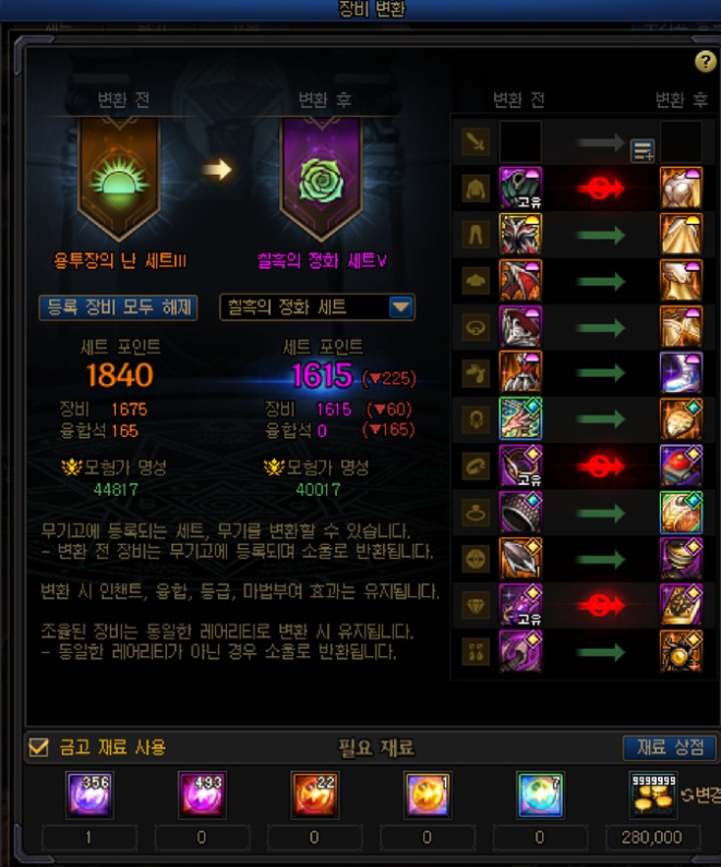 특수장비는 35를 목표로 하고 있습니다. (현재 과거의 유산 45 2부위, 35 1부위)
