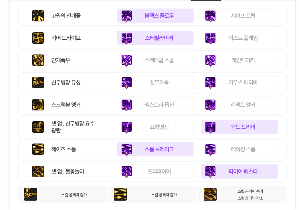 스킬개화 파이어페스타를 찍을 경우 불꽃놀이 이후 쿨타임 초기화로 또 쓸 수 있습니다.