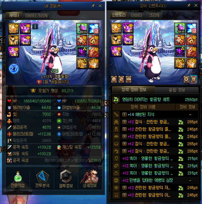 1) 115레벨 세트 융합석